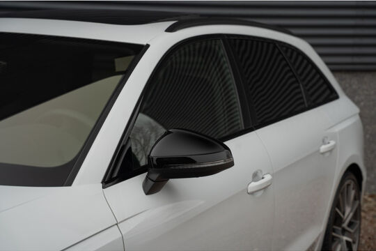 Het exterieur van deze Audi A4 is voorzien van luxe details, zoals koplampsproeiers die niet alleen zorgen voor een helder zicht, maar ook bijdragen aan de elegante uitstraling van de auto. De zwarte buitenspiegels geven de auto een stoer tintje en maken het plaatje helemaal compleet.