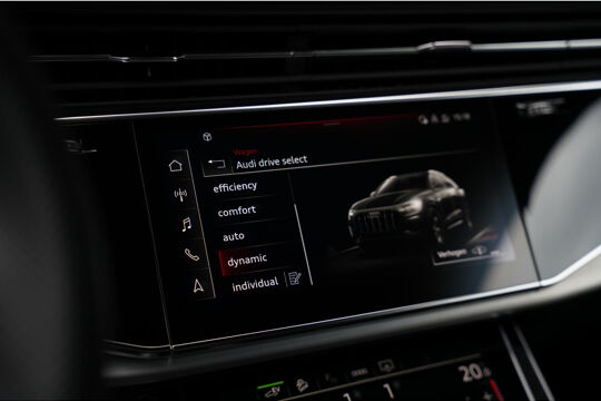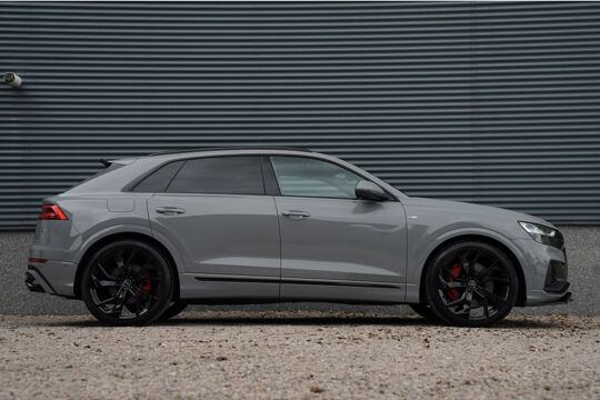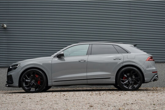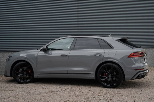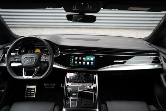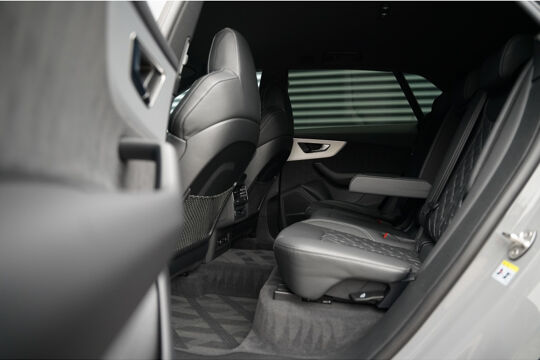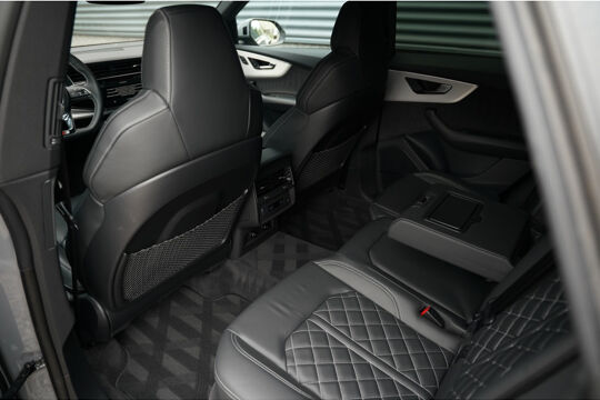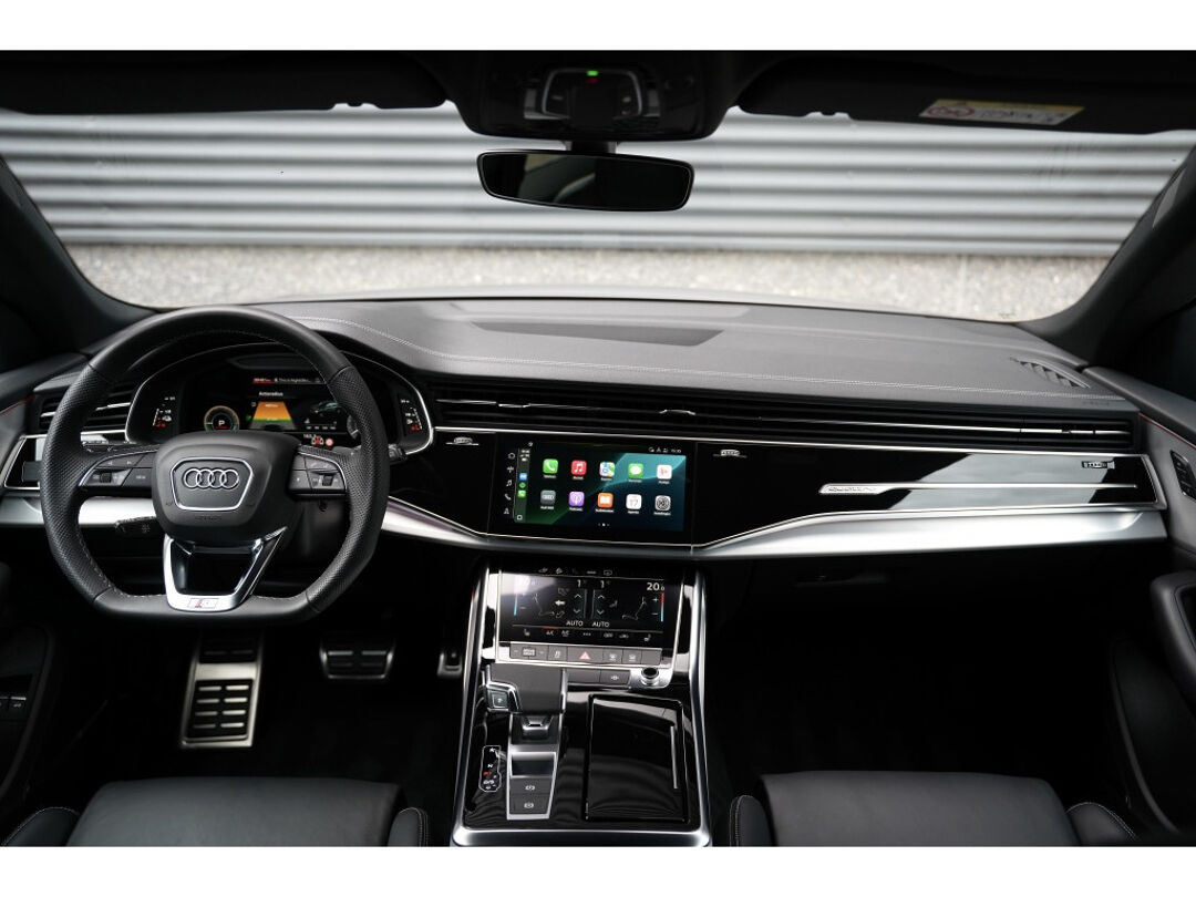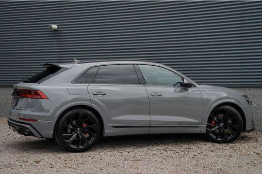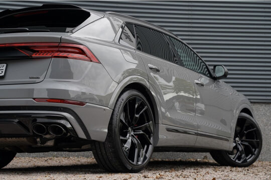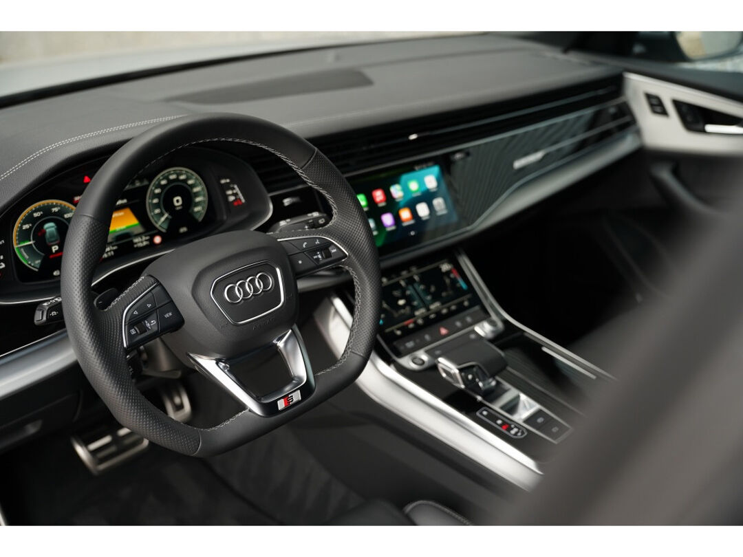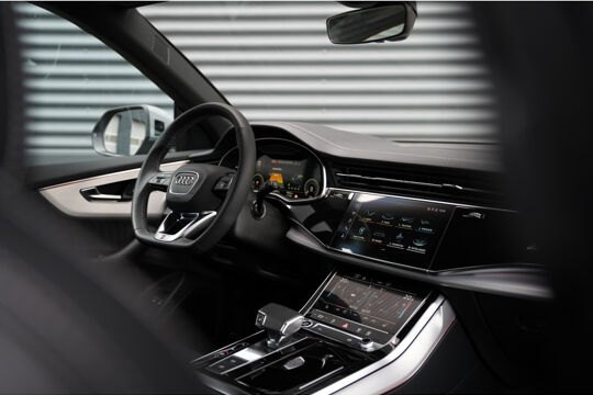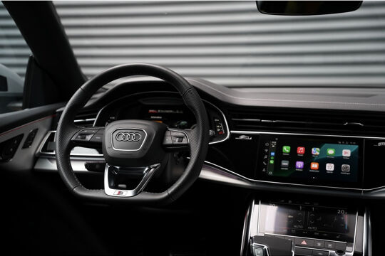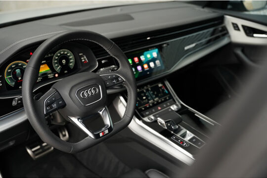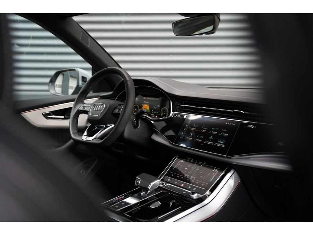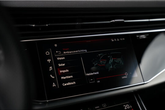 Dankzij de luchtvering geniet u van een soepele en comfortabele rit, zelfs op oneffen wegen. De imposante 23' inch wielen geven de Audi Q8 een stoere uitstraling en zorgen voor een uitstekende wegligging. De ambiance verlichting creëert een sfeervolle ambiance in het interieur, terwijl de RS-stoelen met ruitstiksels zorgen voor een sportieve en luxe uitstraling.