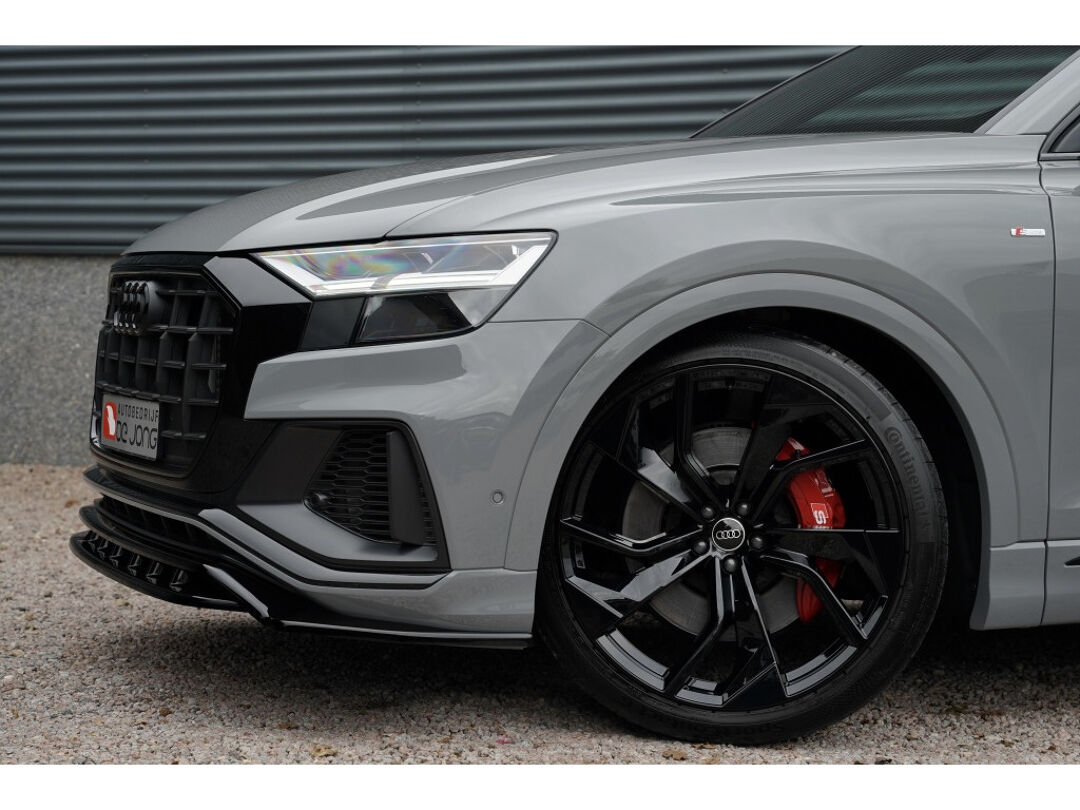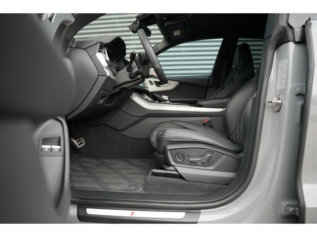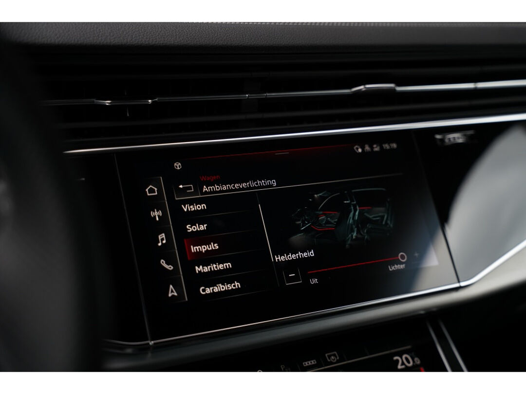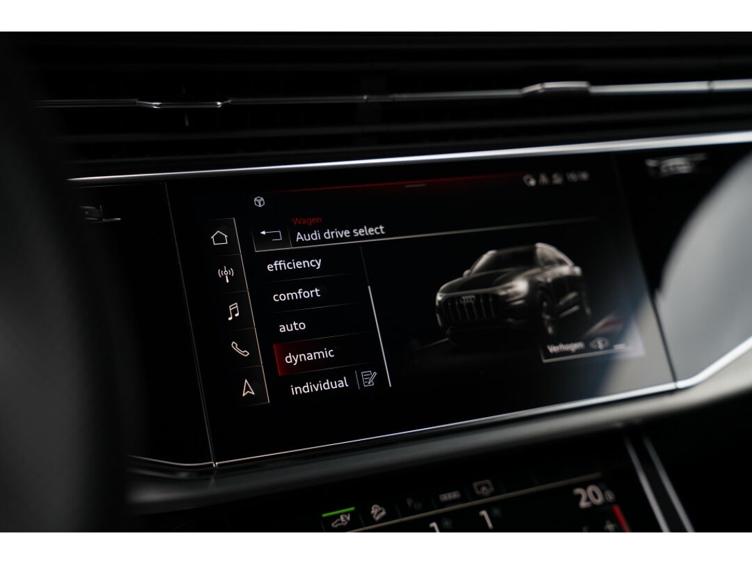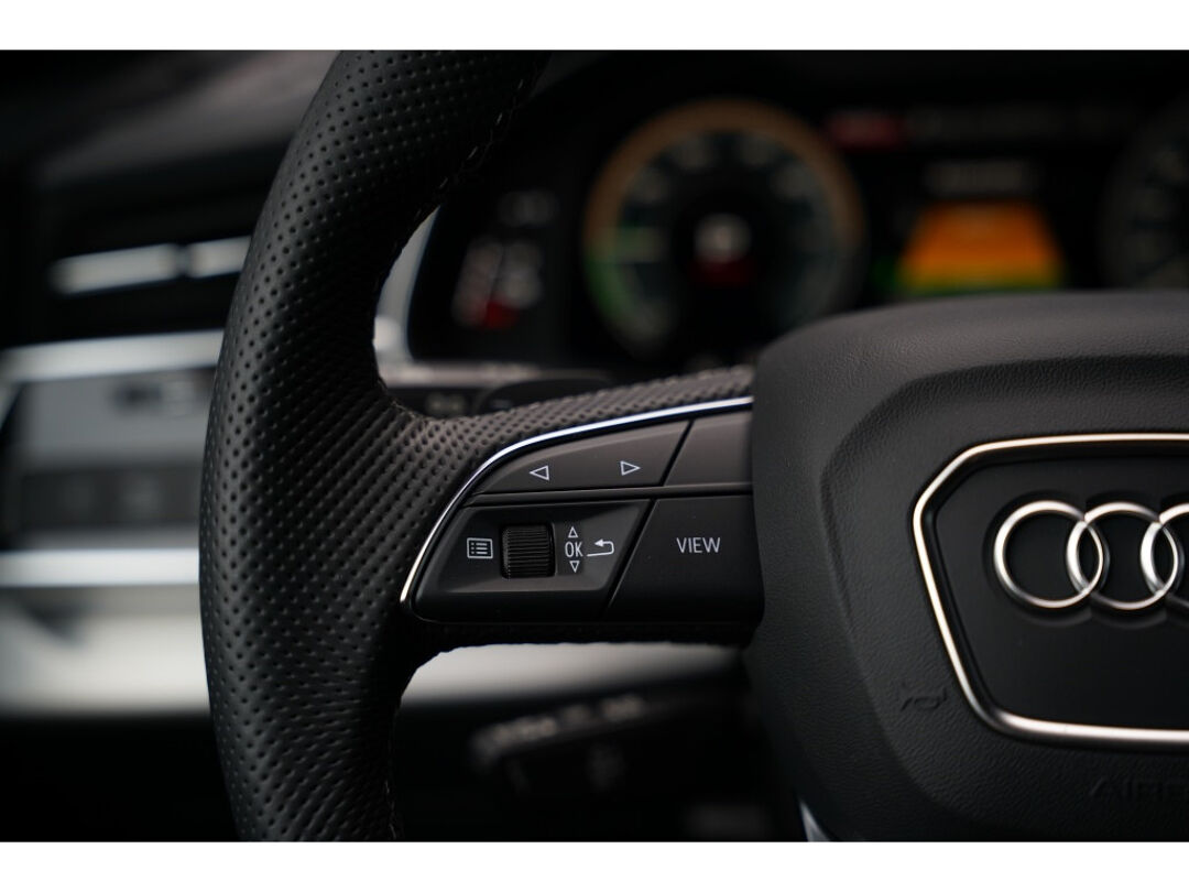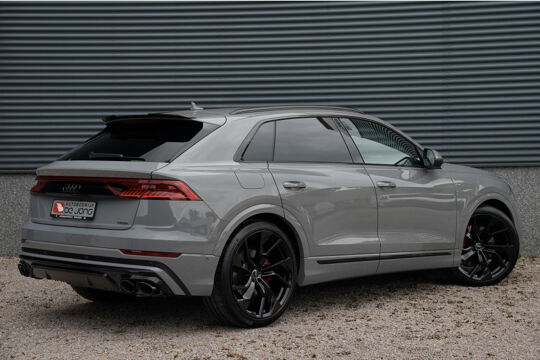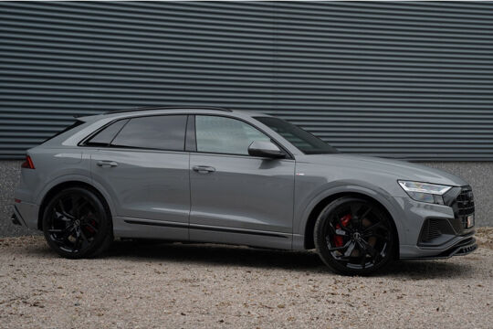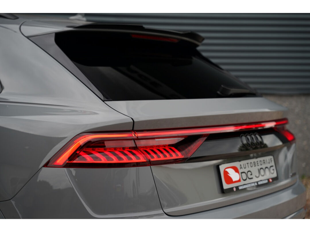 Dankzij de luchtvering geniet u van een soepele en comfortabele rit, zelfs op oneffen wegen. De imposante 23' inch wielen geven de Audi Q8 een stoere uitstraling en zorgen voor een uitstekende wegligging. De ambiance verlichting creëert een sfeervolle ambiance in het interieur, terwijl de RS-stoelen met ruitstiksels zorgen voor een sportieve en luxe uitstraling.