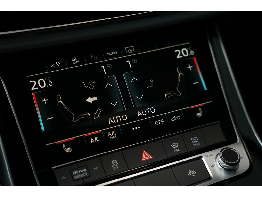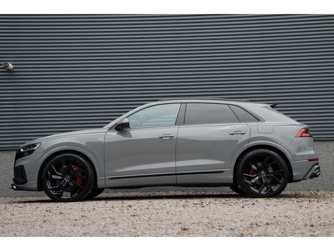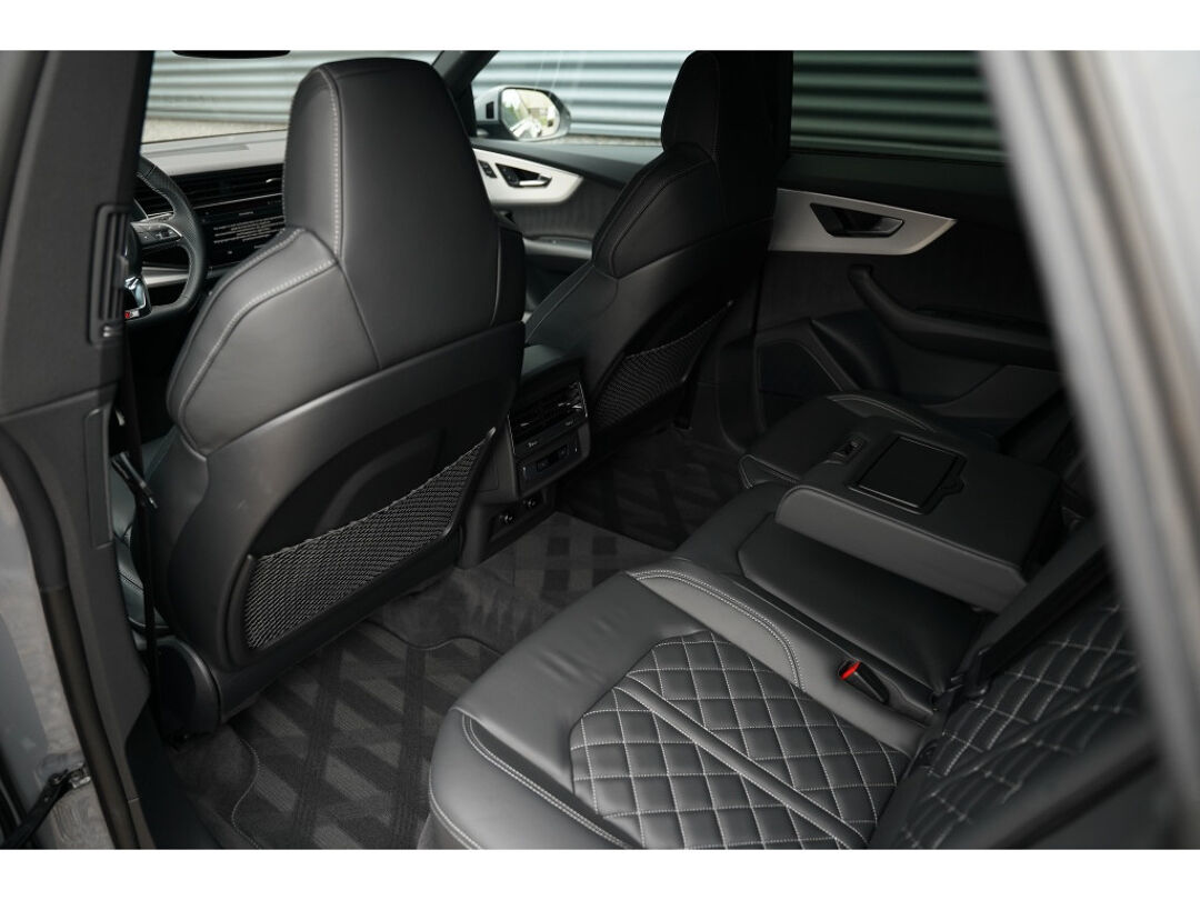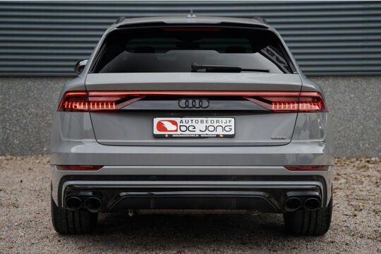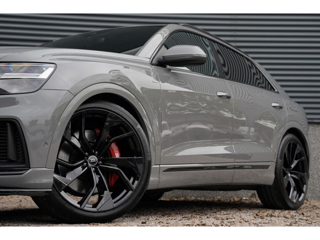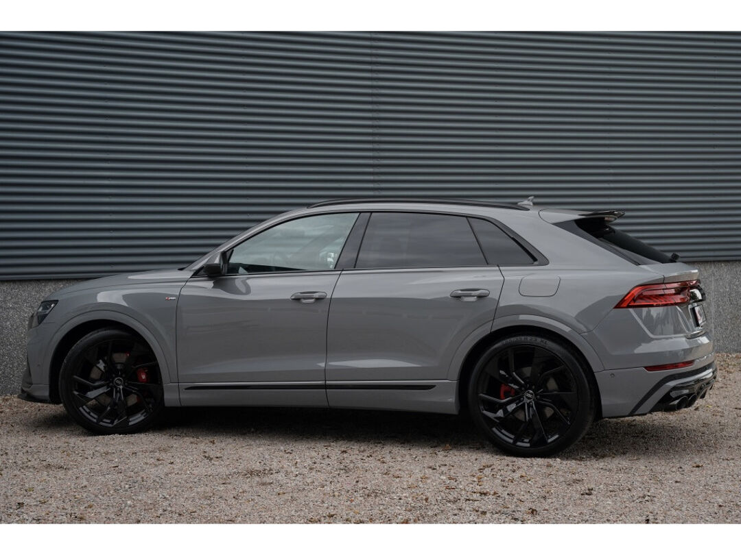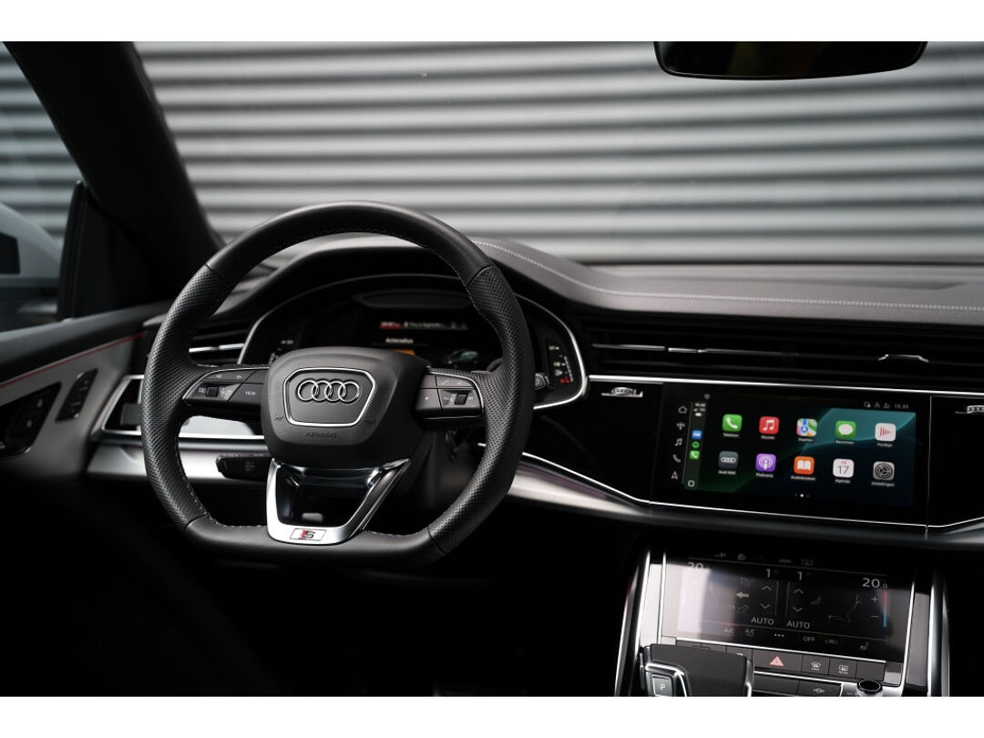 Dankzij de luchtvering geniet u van een soepele en comfortabele rit, zelfs op oneffen wegen. De imposante 23' inch wielen geven de Audi Q8 een stoere uitstraling en zorgen voor een uitstekende wegligging. De ambiance verlichting creëert een sfeervolle ambiance in het interieur, terwijl de RS-stoelen met ruitstiksels zorgen voor een sportieve en luxe uitstraling.