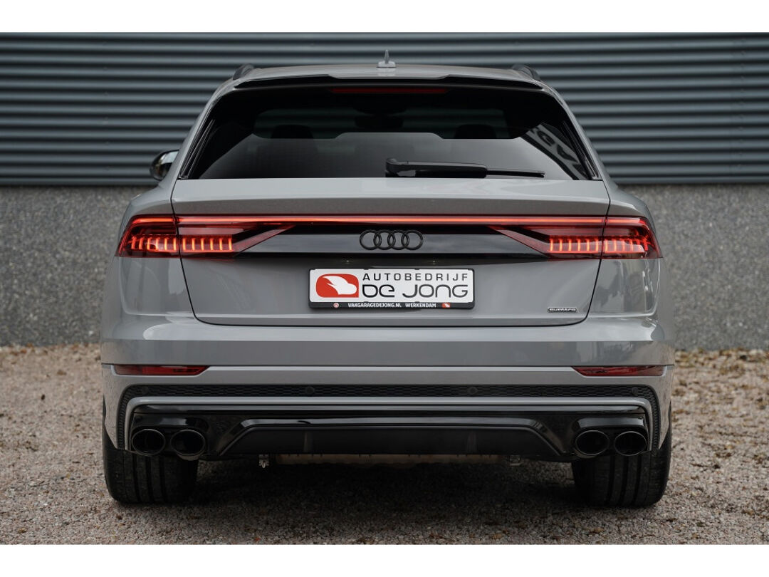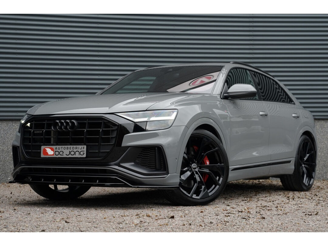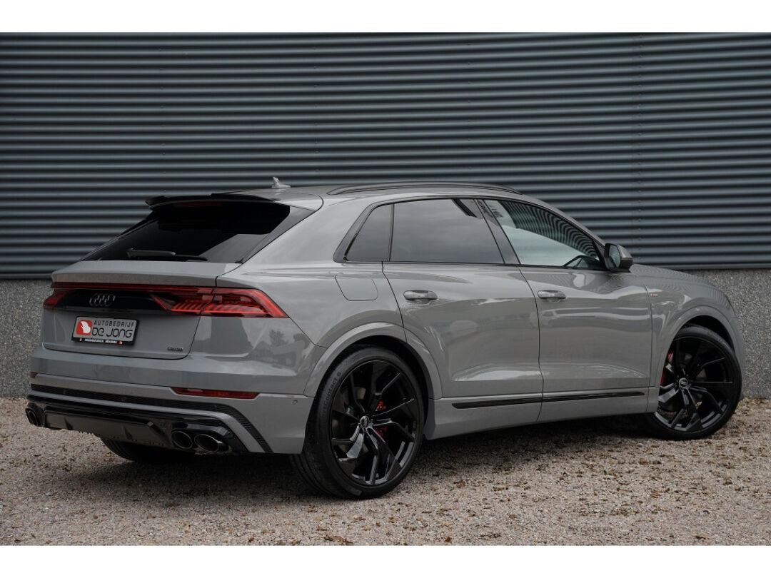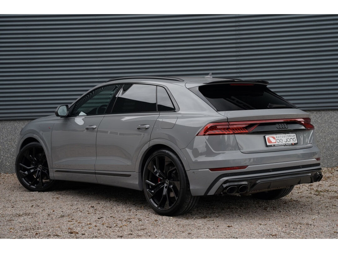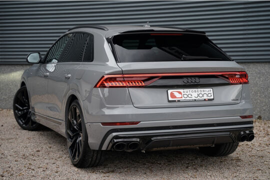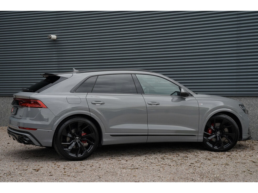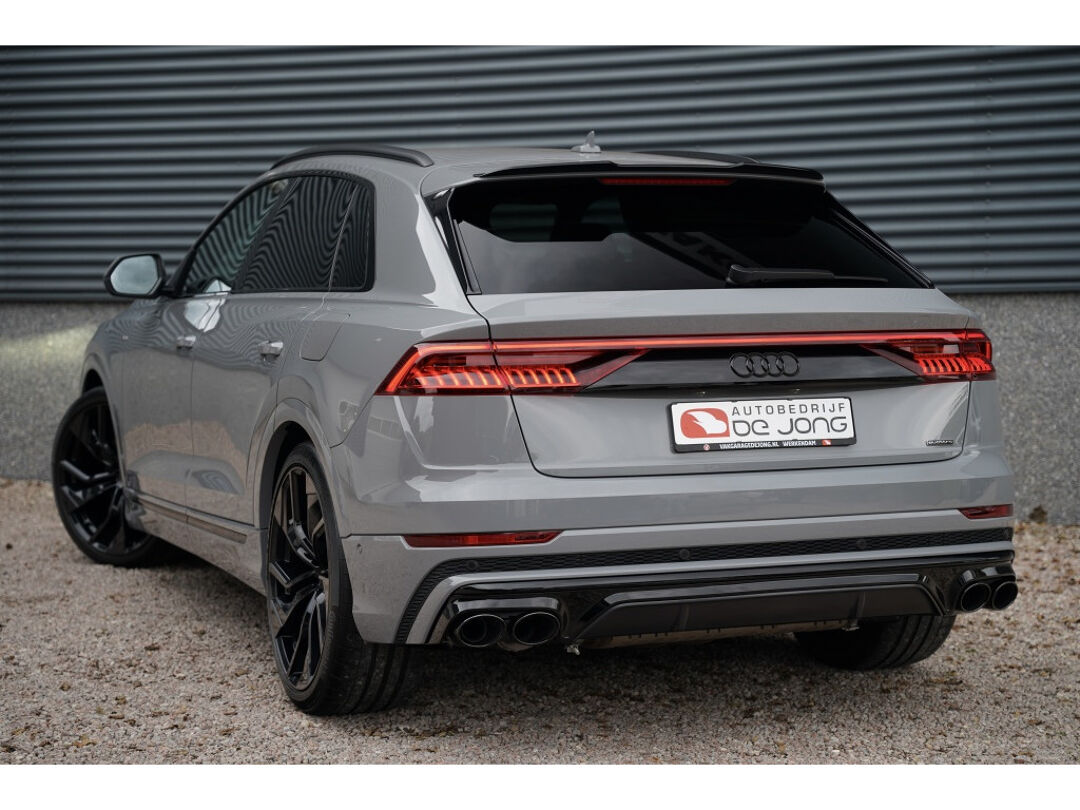 Dankzij de luchtvering geniet u van een soepele en comfortabele rit, zelfs op oneffen wegen. De imposante 23' inch wielen geven de Audi Q8 een stoere uitstraling en zorgen voor een uitstekende wegligging. De ambiance verlichting creëert een sfeervolle ambiance in het interieur, terwijl de RS-stoelen met ruitstiksels zorgen voor een sportieve en luxe uitstraling.