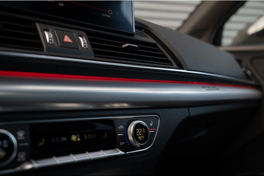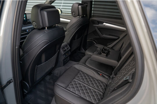 Stap in en laat de massagestoelen u verwennen met verschillende massageprogramma's voor ultieme ontspanning tijdens het rijden. De ambiance verlichting in het interieur creëert een sfeervolle en luxueuze omgeving, terwijl de carbon spiegelkappen de sportieve uitstraling van deze Audi Q5 benadrukken.